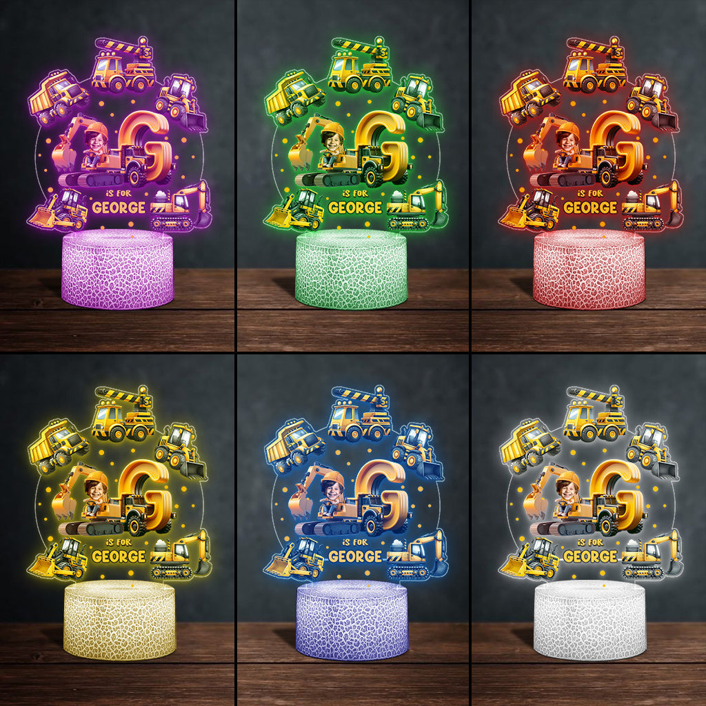 Construction Vehicle Alphabet - Personalized Kid Shaped Plaque Light Base