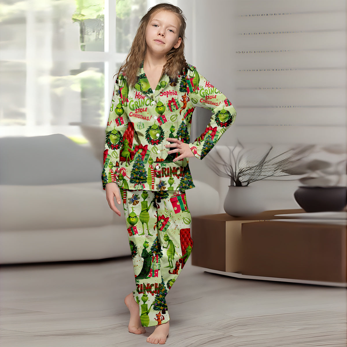 Green Christmas - Personalized Stole Christmas Button Down Pajamas