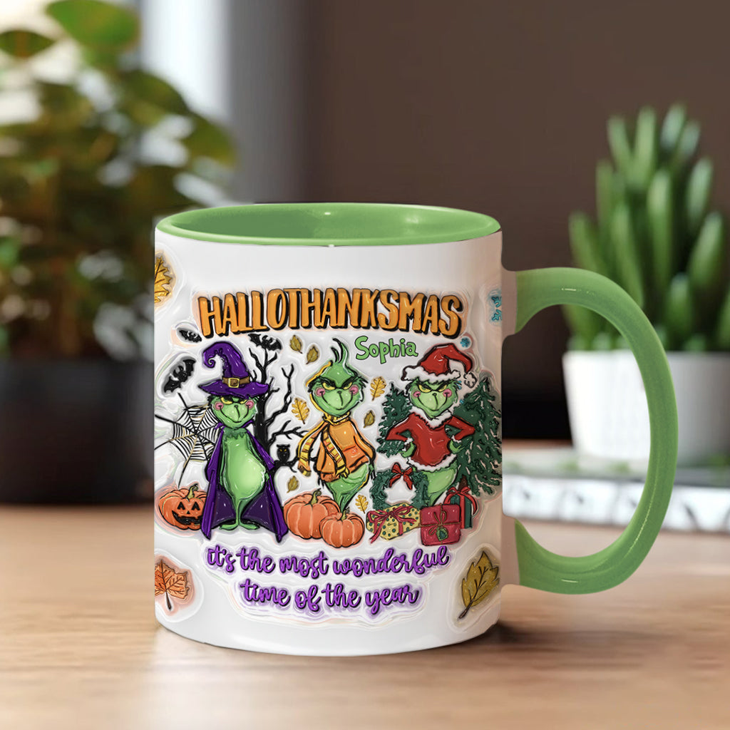Happy Hallothanksmas - Personalized Stole Christmas Accent Mug