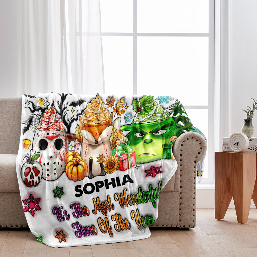 Happy Hallothanksmas - Personalized Stole Christmas Blanket
