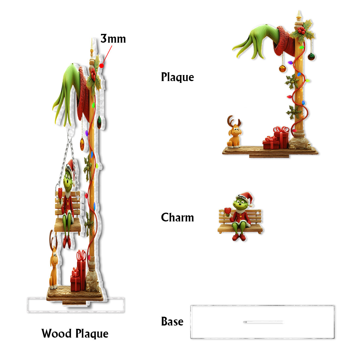 Merry Grinchmas - Personalized Stole Christmas Plaque With Charm