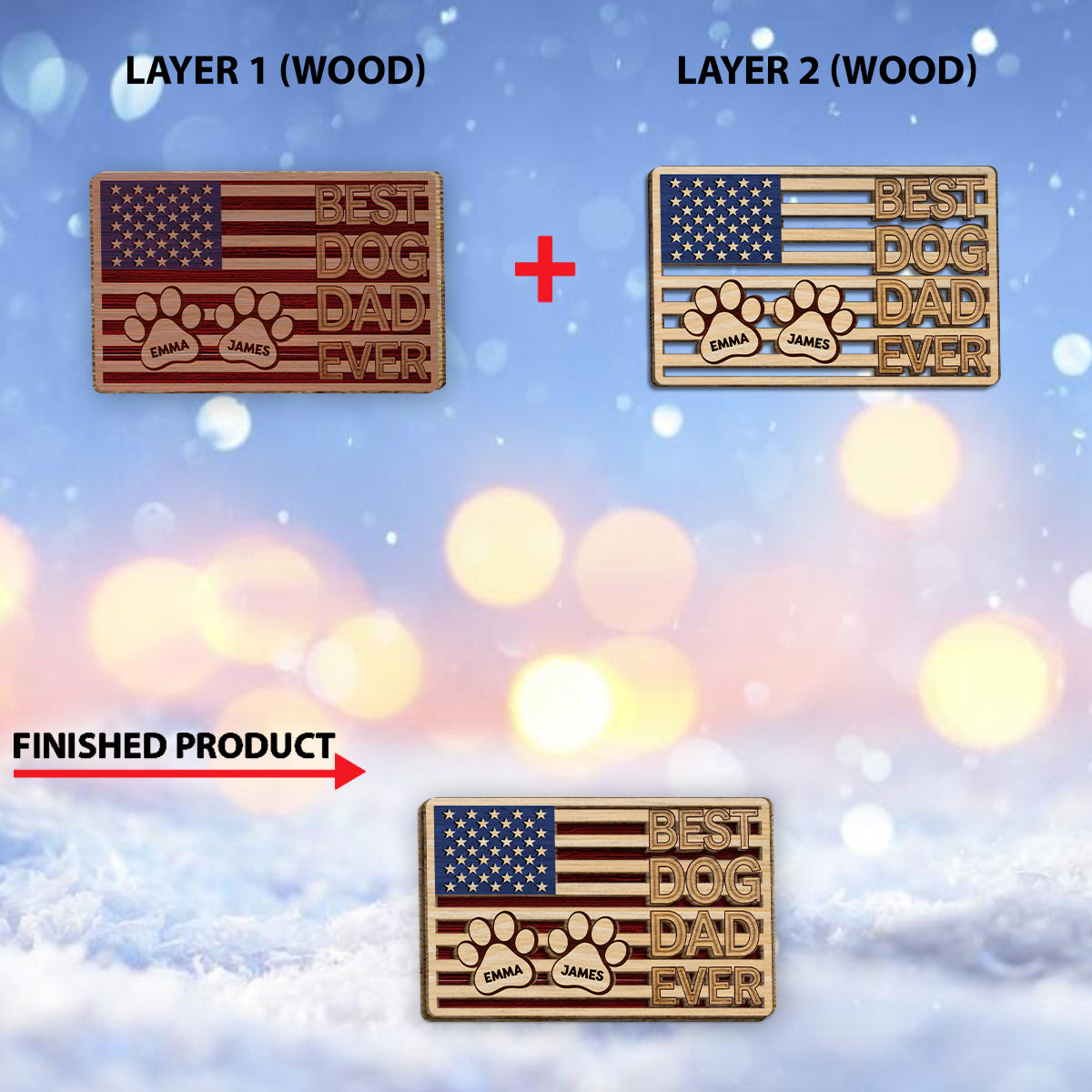 Meilleur papa de chien au monde - Plaque en bois personnalisée à 2 couches