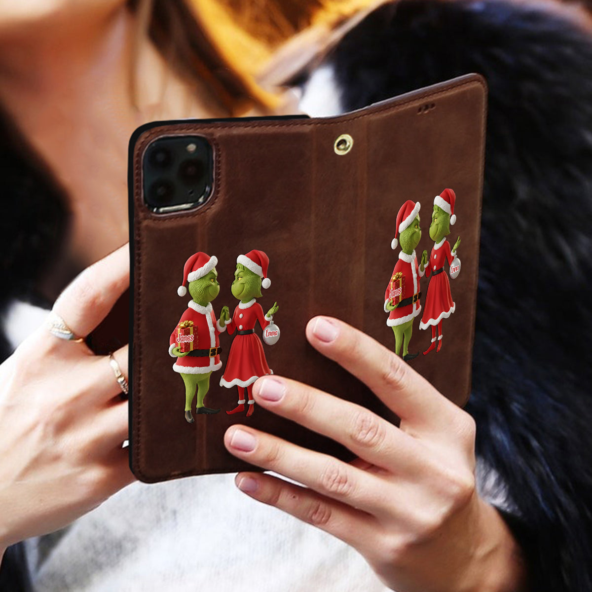 Cadeau de Noël Joyeux Grinchmas - Étui portefeuille/téléphone personnalisé avec bandoulière et motif étole de Noël