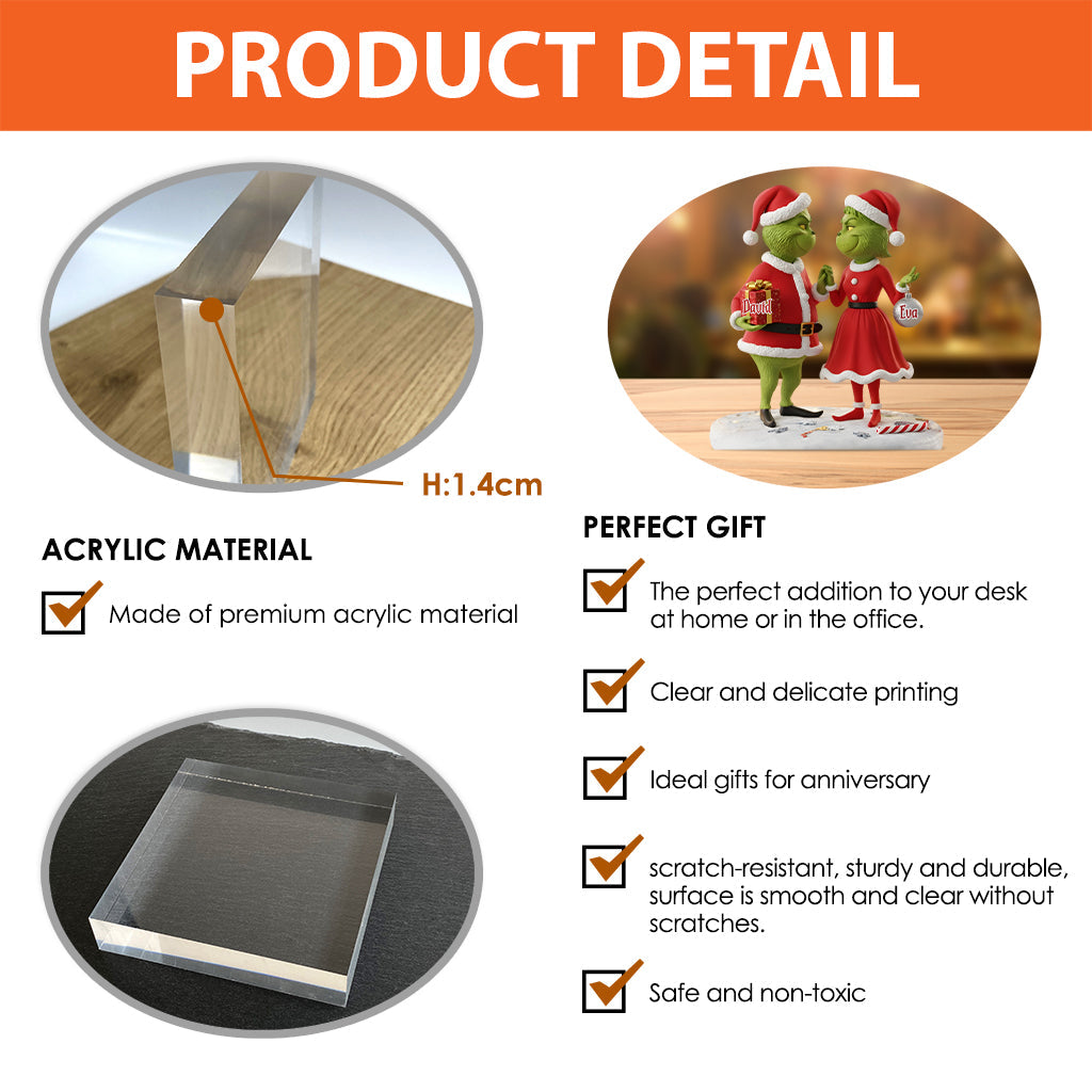 Cadeau pour couple Joyeux Grinchmas - Étole de Noël personnalisée sur plaque acrylique en forme personnalisée