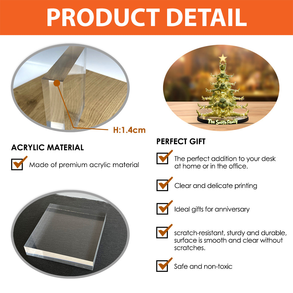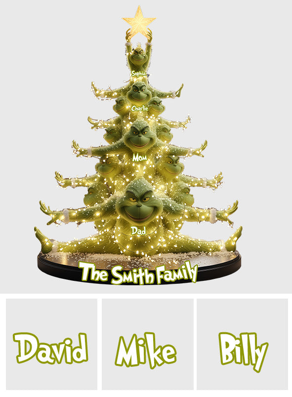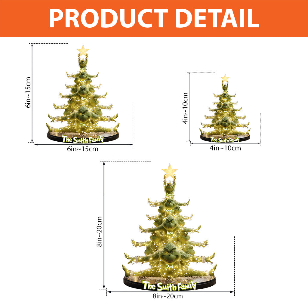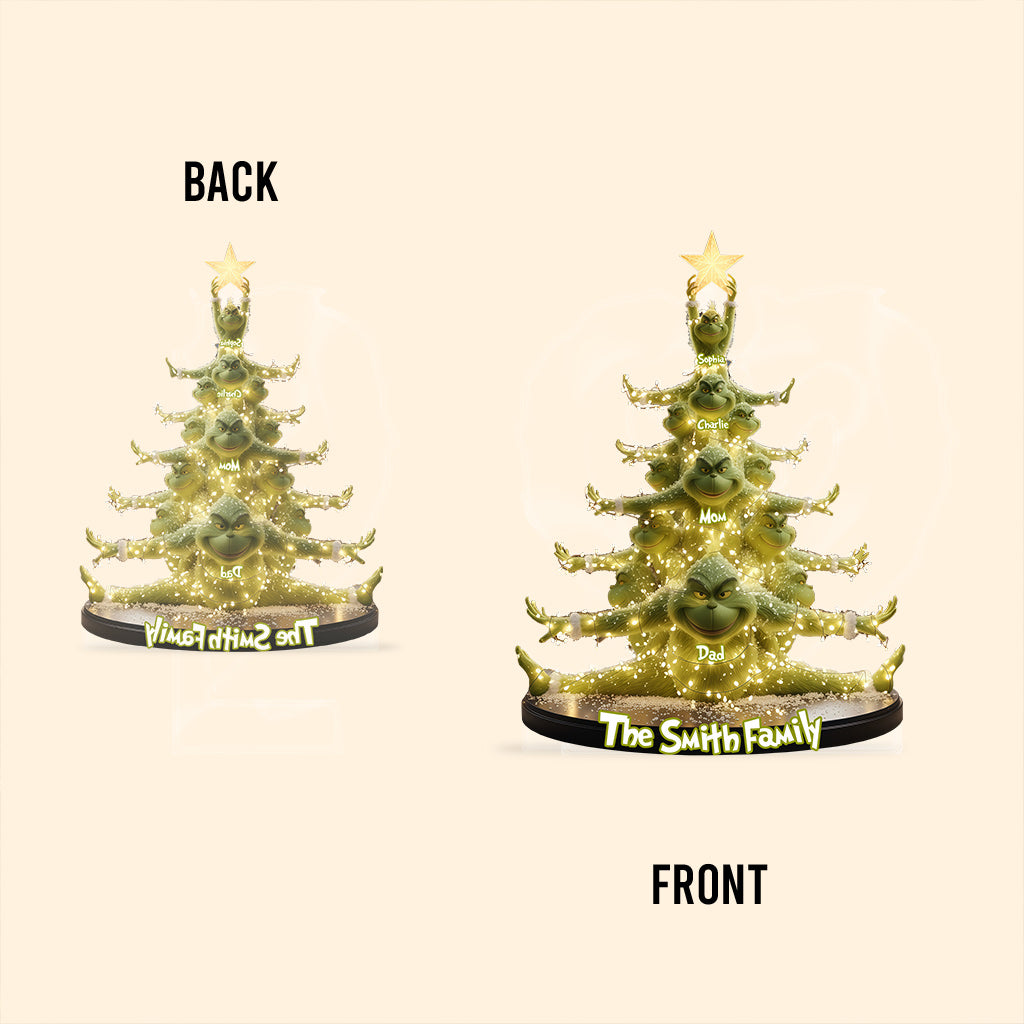 Famille de monstres verts - Étole de Noël personnalisée - Plaque acrylique sur mesure
