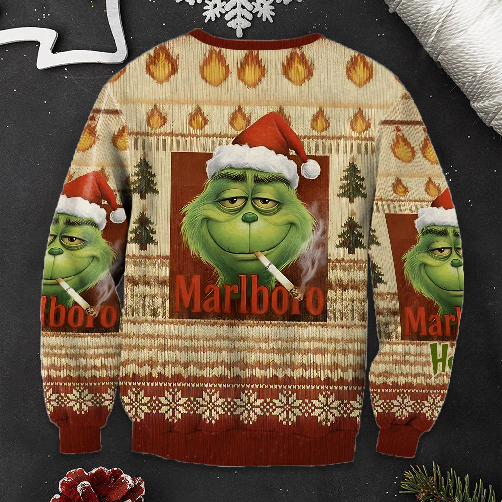 Film de Noël Green Monster Cigarette - Pull de Noël moche personnalisé