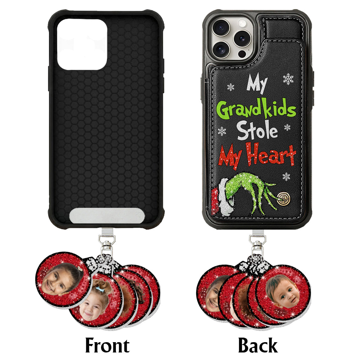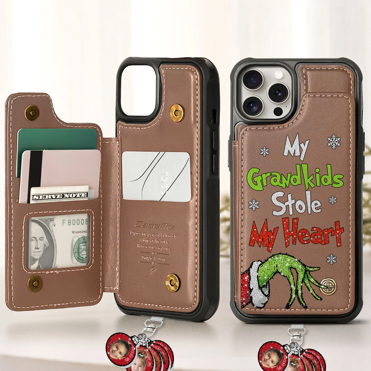 Mes petits-enfants... ont volé mon cœur - Portefeuille de téléphone personnalisé « Fuite de Noël » avec breloques